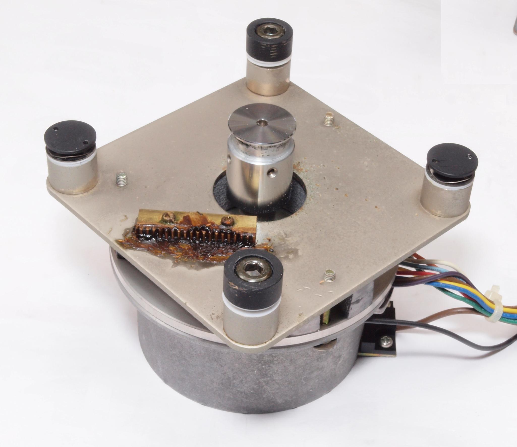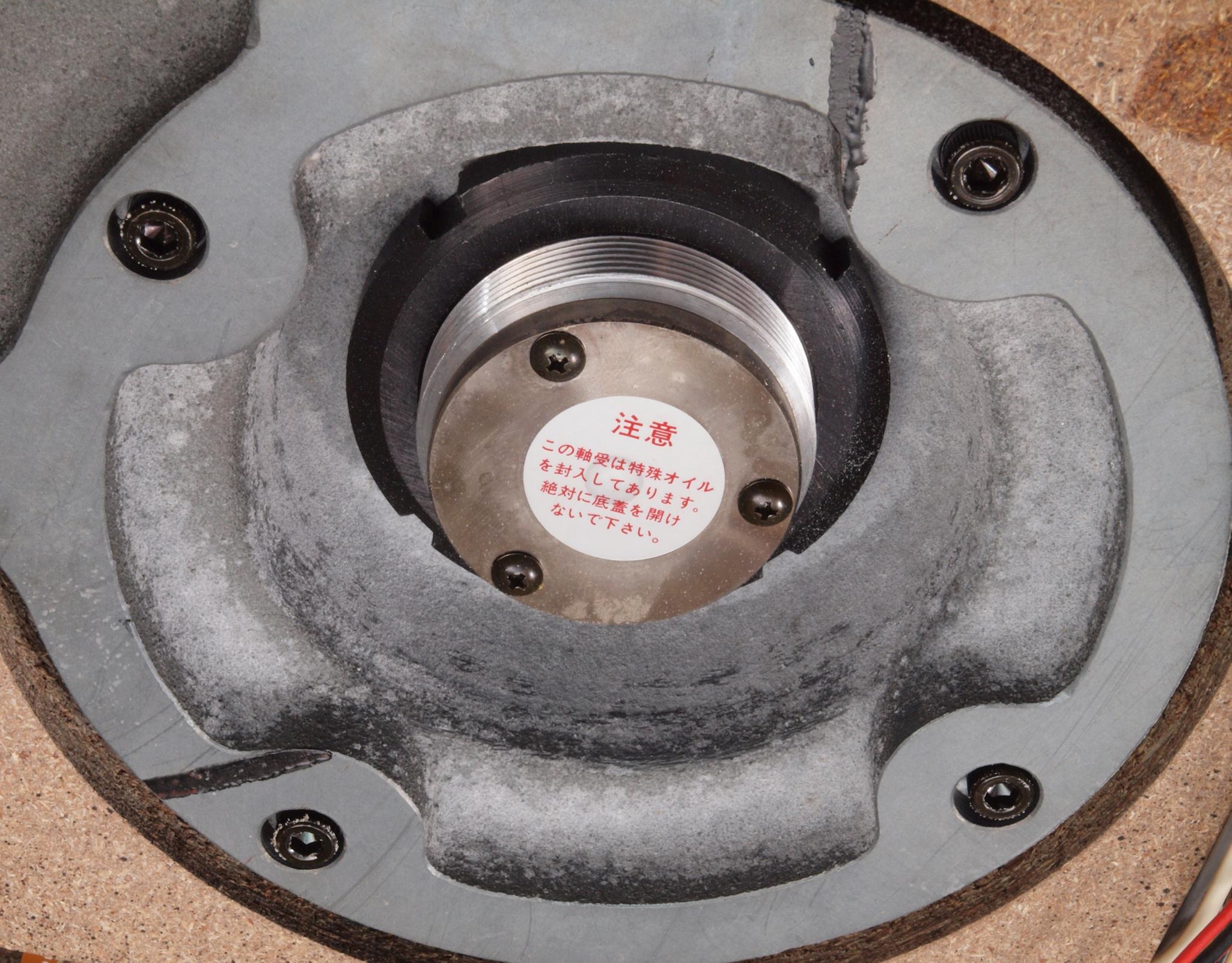 | A1A. 点検中 タンテーブルを外し、上から見る。タンテーブル(プラッター)軸。粘度の低いオイルを使用した! 高負荷の軸受けは高粘度オイルを使用する。 | ||||||||||||||||||||||||||||||||||||||||||||||||||||