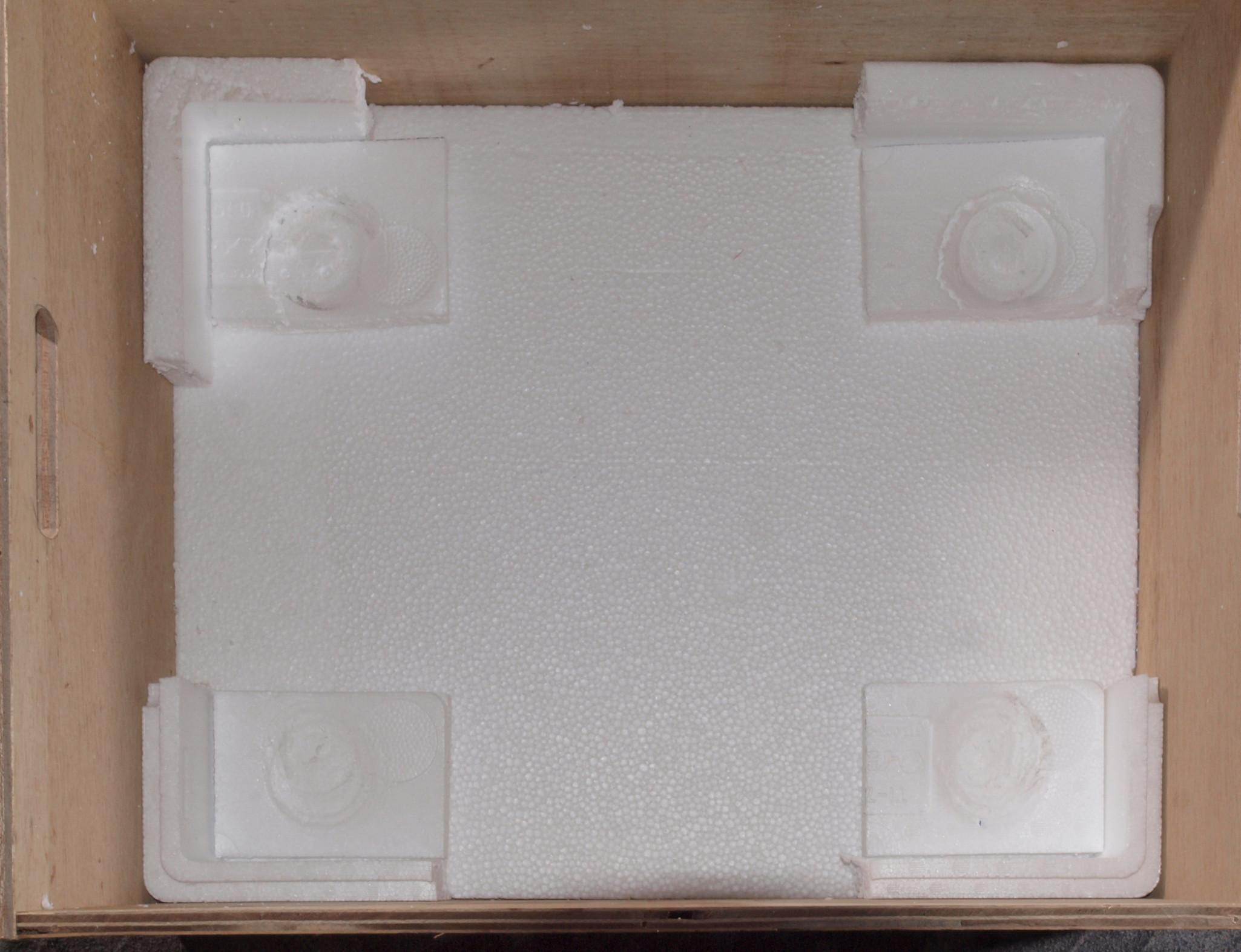 | M2. 本体を入れた木箱の下の発泡スチロール。重みでかなり凹んで居る。 | ||||||||||||||||||||||||||||||||||||||||||||||||||||