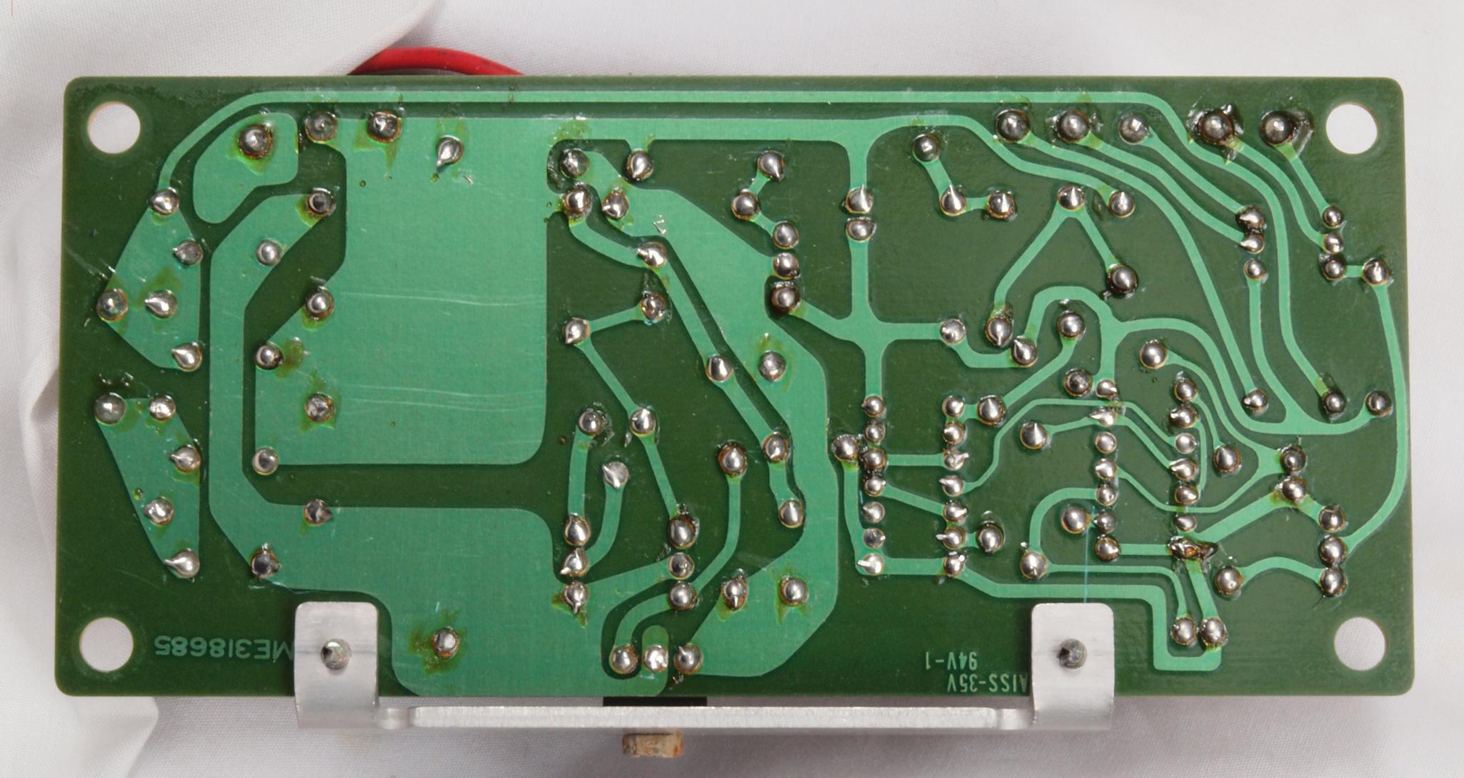 | C34. 完成ヒューズ基板裏。 余分なフラックスを落として、コート液を塗る。 | ||||||||||||||||||||||||||||||||||||||||||||||||||||