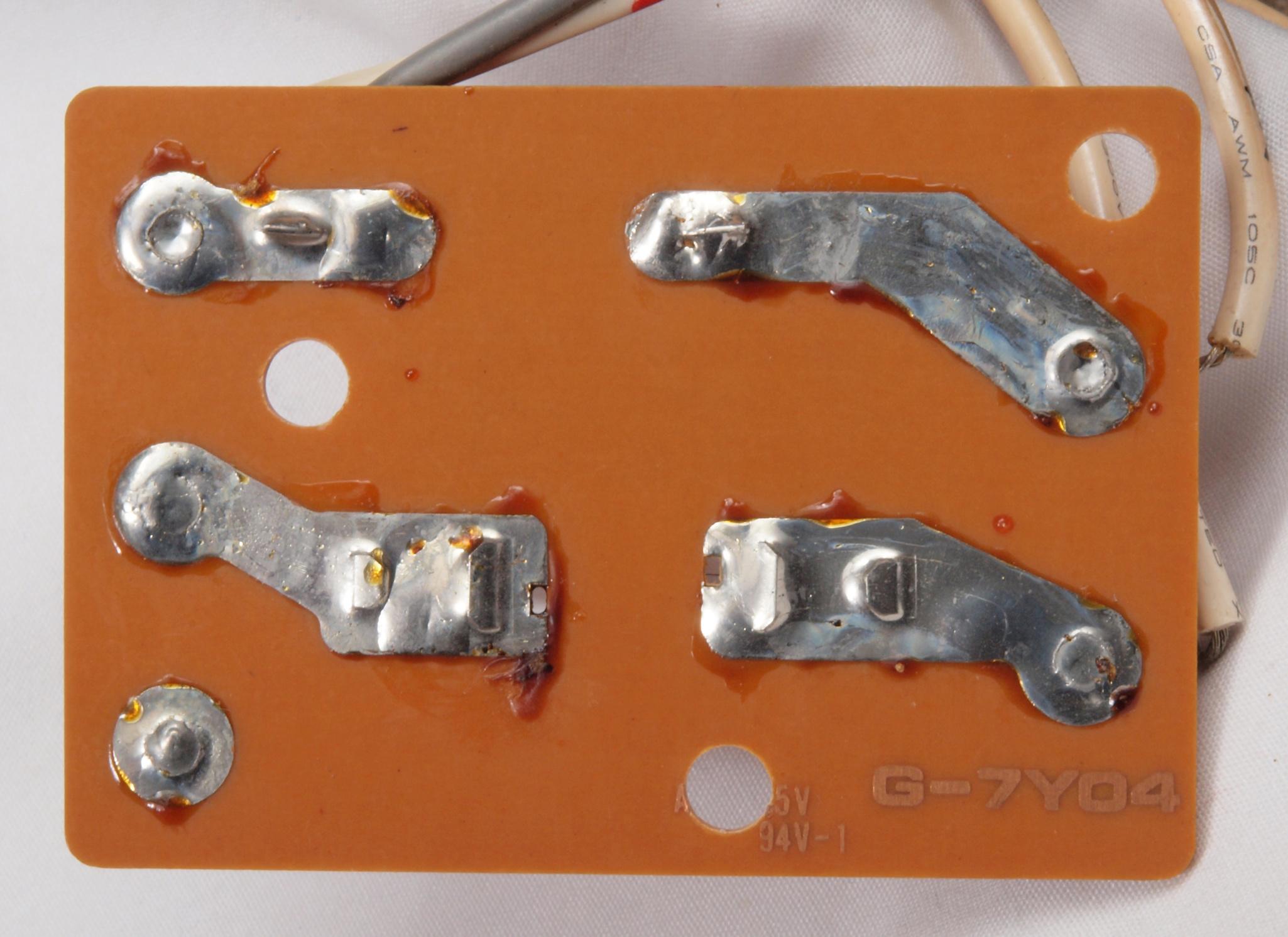 | W74. 修理前 電源ソケット、端子板取付け穴、反対側。 | ||||||||||||||||||||||||||||||||||||||||||||||||||||