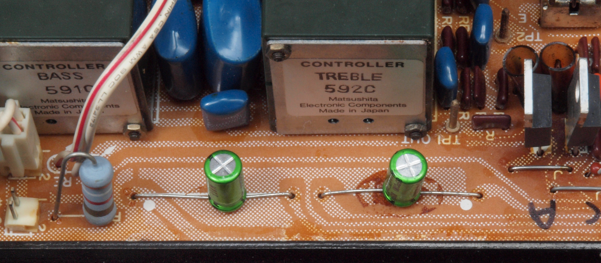 | C72. 修理後 ToneControl基板。 電解コンデンサー2個、フイルムコンデンサー2個、半固定VR2個交換 | ||||||||||||||||||||||||||||||||||||||||||||||